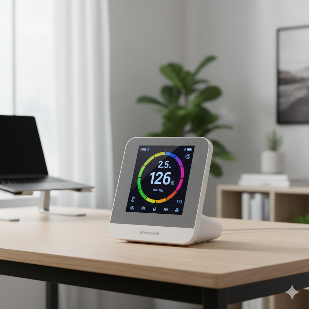 Indoor AQI, PM2.5/PM10 trends, temperature & humidity.